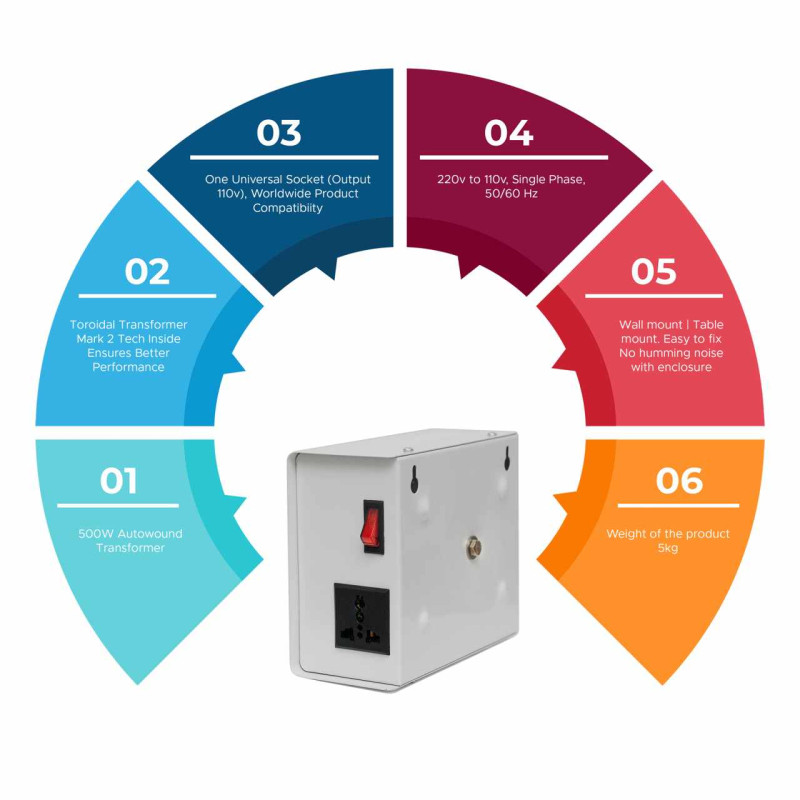 Step Down Auto wound 750 w 220 to 110v Maxine Power Voltage Convertor Transformer for US Appliances Used in India