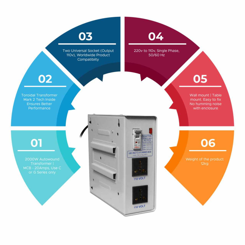 Step Down Auto wound 2000 w 220 to 110v Maxine Power Voltage Convertor Transformer for US Appliances Used in India