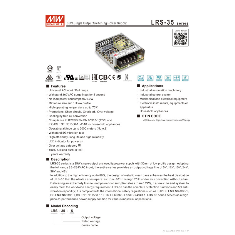 - Product Code: MW LRS -35 -12